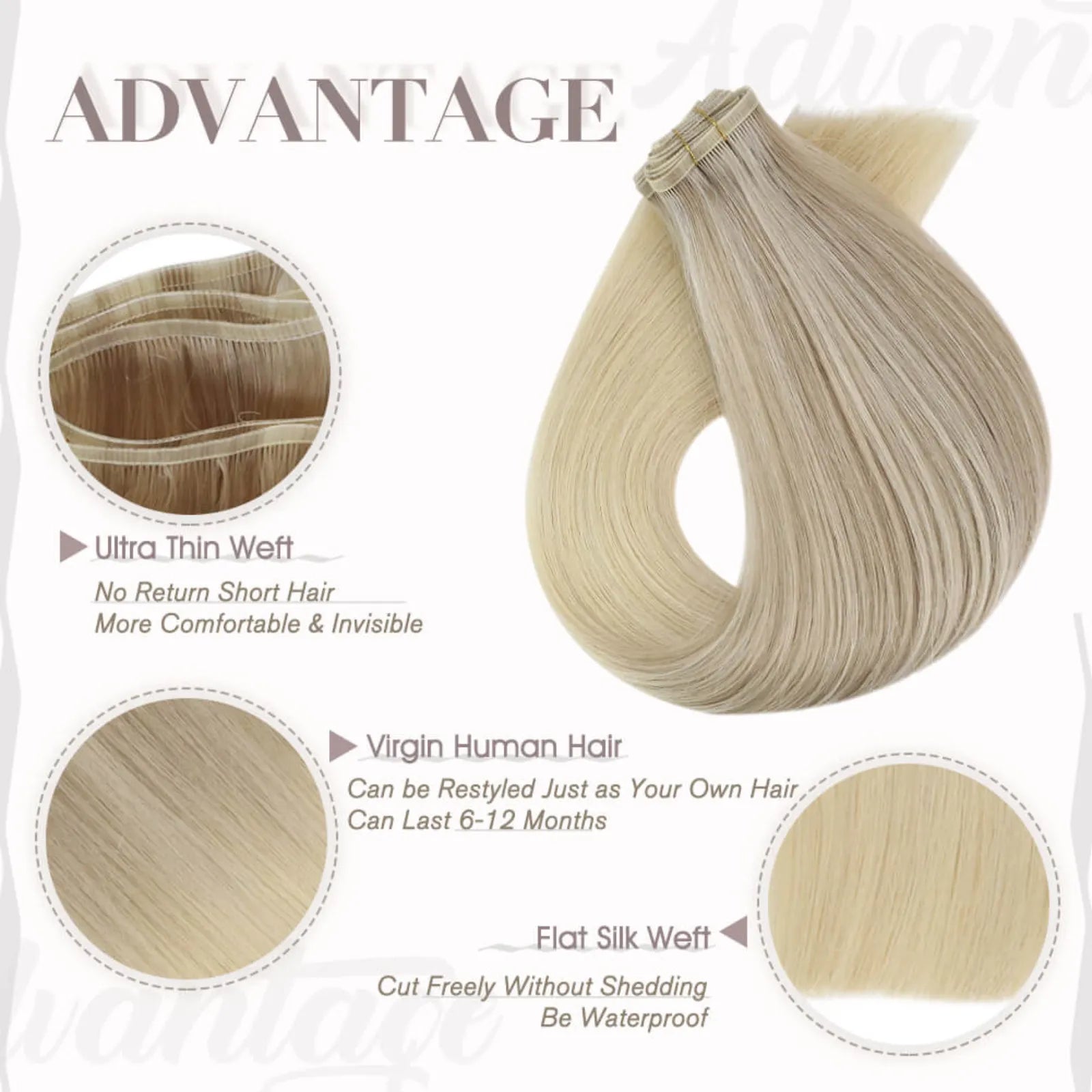 Virgin Flat Silk Weft Hair Extensions Ombre Blonde #18/22/60