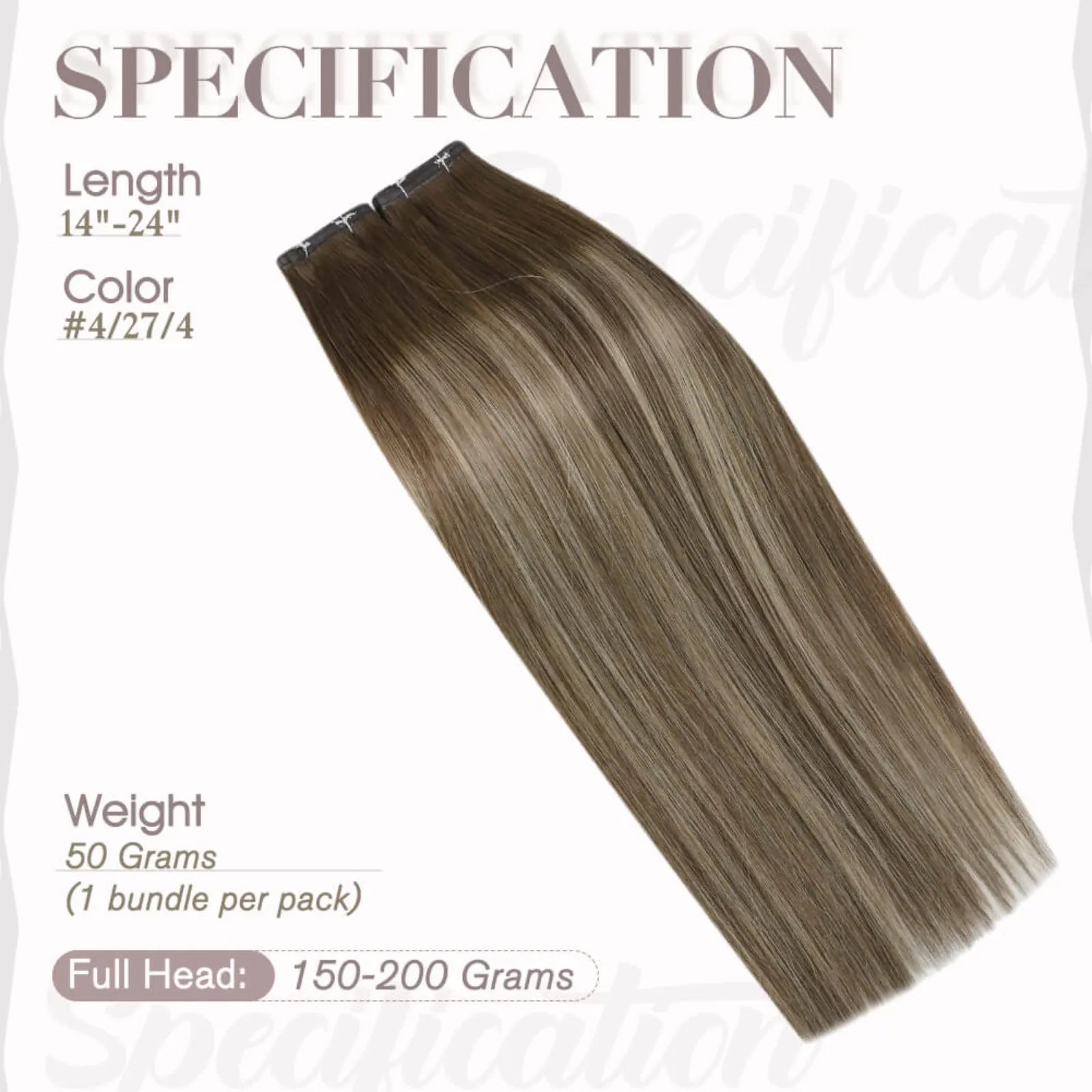 Virgin Flat Silk Weft Hair Extensions Balayage Brown #4/27/4