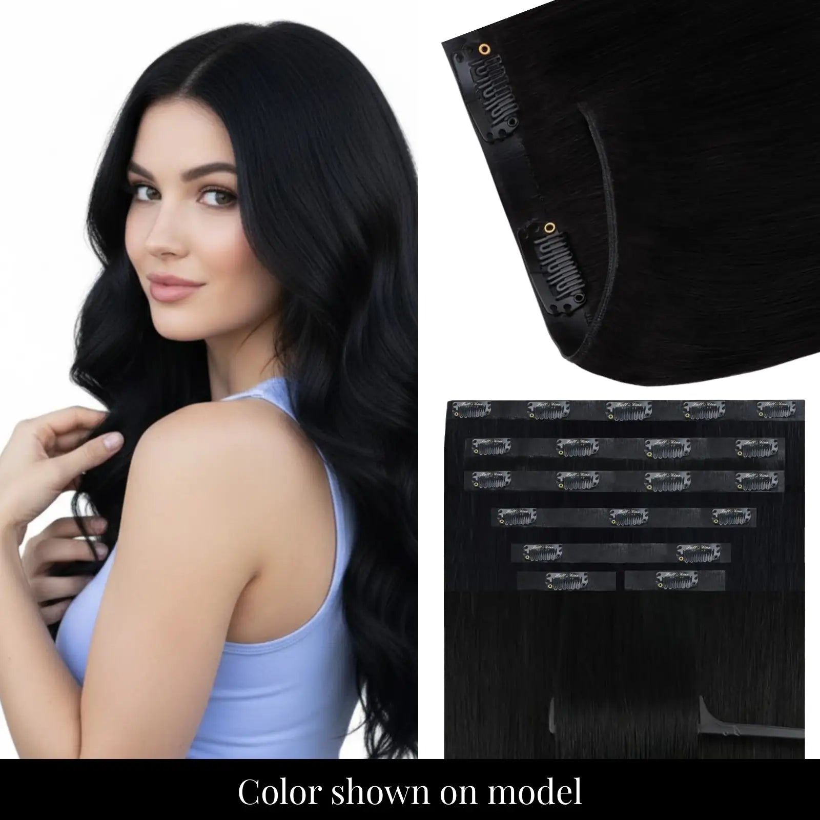 Maximum Comfort: The genius weft design combined with the thin PU strip creates the most comfortable wear experience, with no irritation even during all-day use. The 20 clips are distributed across 7 pieces for secure, balanced hold.