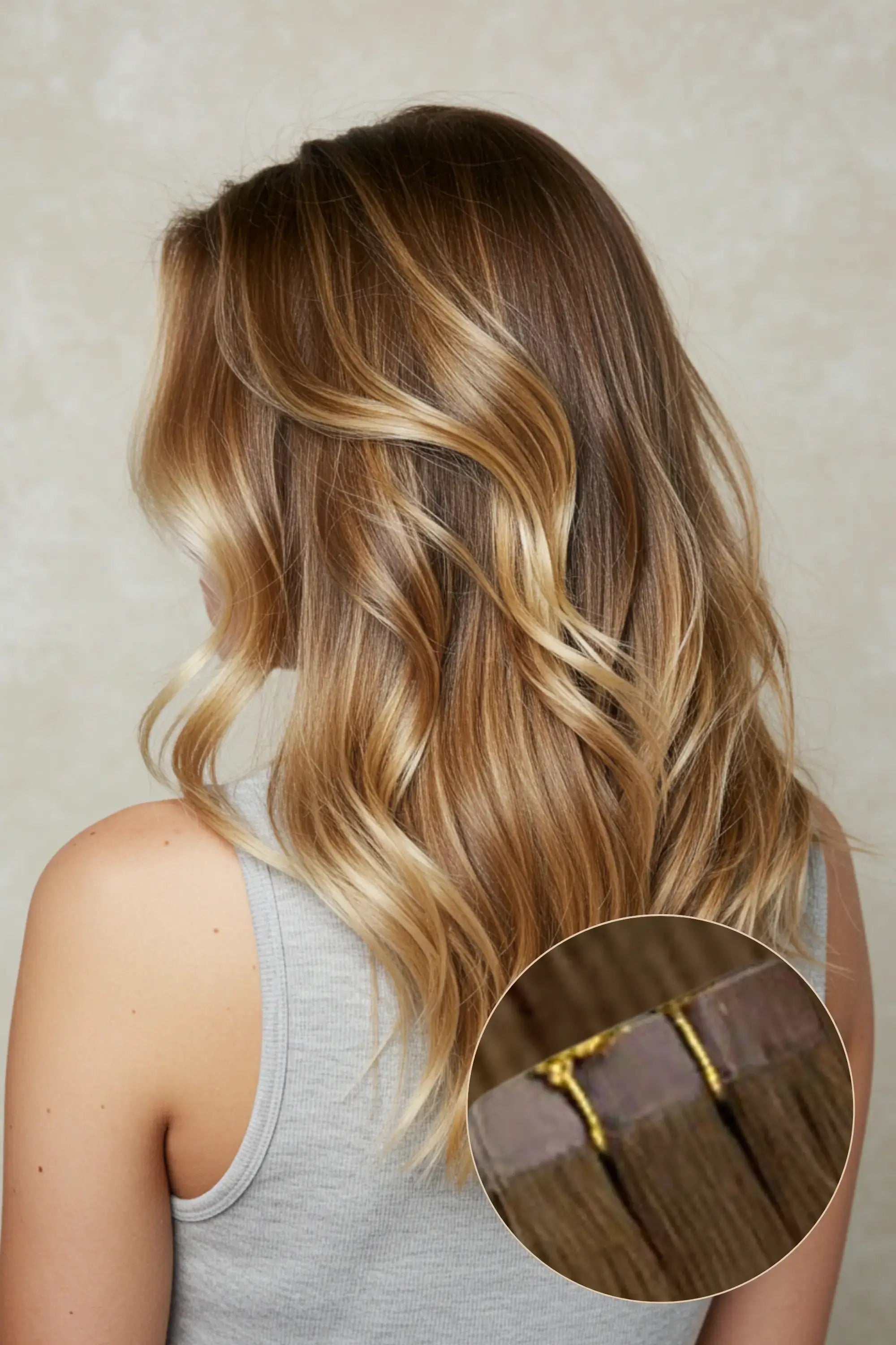 Virgin Tape in Human Hair Extensions Balayage Brown with Blonde #4/7/80