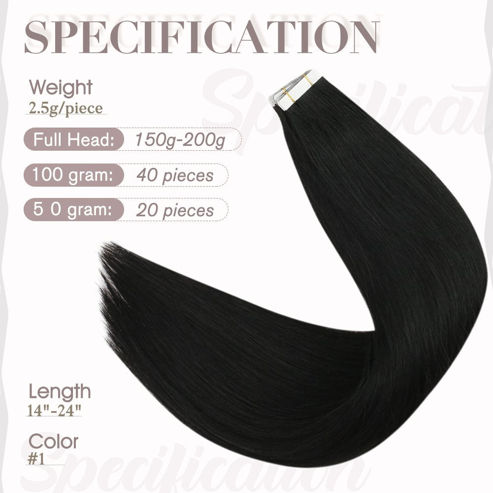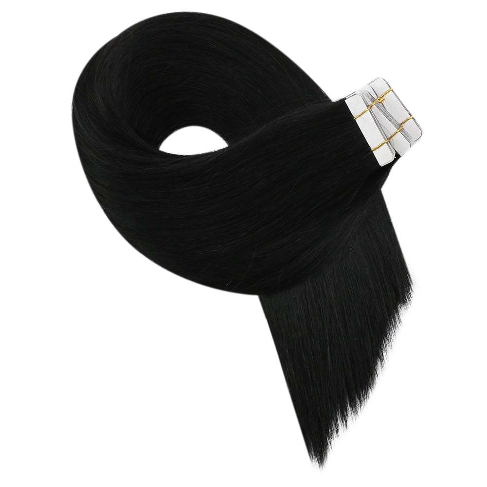 Tape in Human Hair Extensions 100% Virgin Hair Jet Black #1