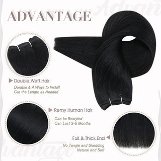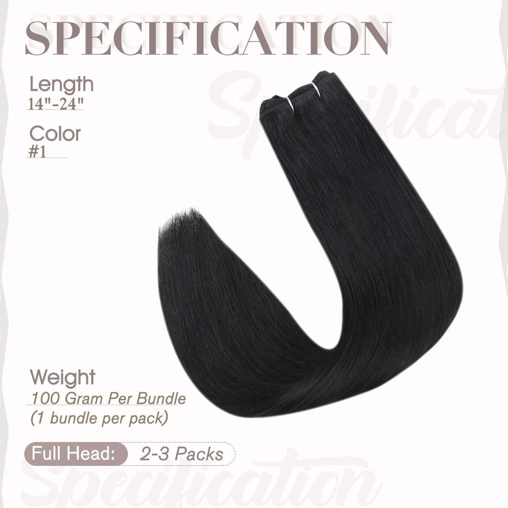 Sew In Hair Weft Bundles 100% Remy Human Hair Jet Black (#1)