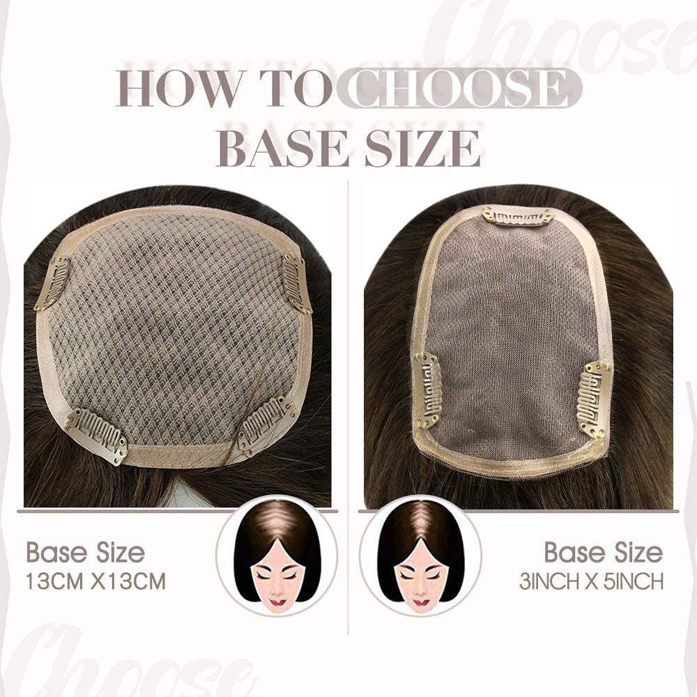 Our 100% human hair toppers provide a versatile styling experience—cut, curl, straighten, or dye them just like your natural hair (from light to dark). With a natural look and feel, these toppers can blend seamlessly with your hair. To minimize tangling, we recommend gentle handling. With proper care, you'll enjoy beautiful, lasting results.5*5 Inch Base