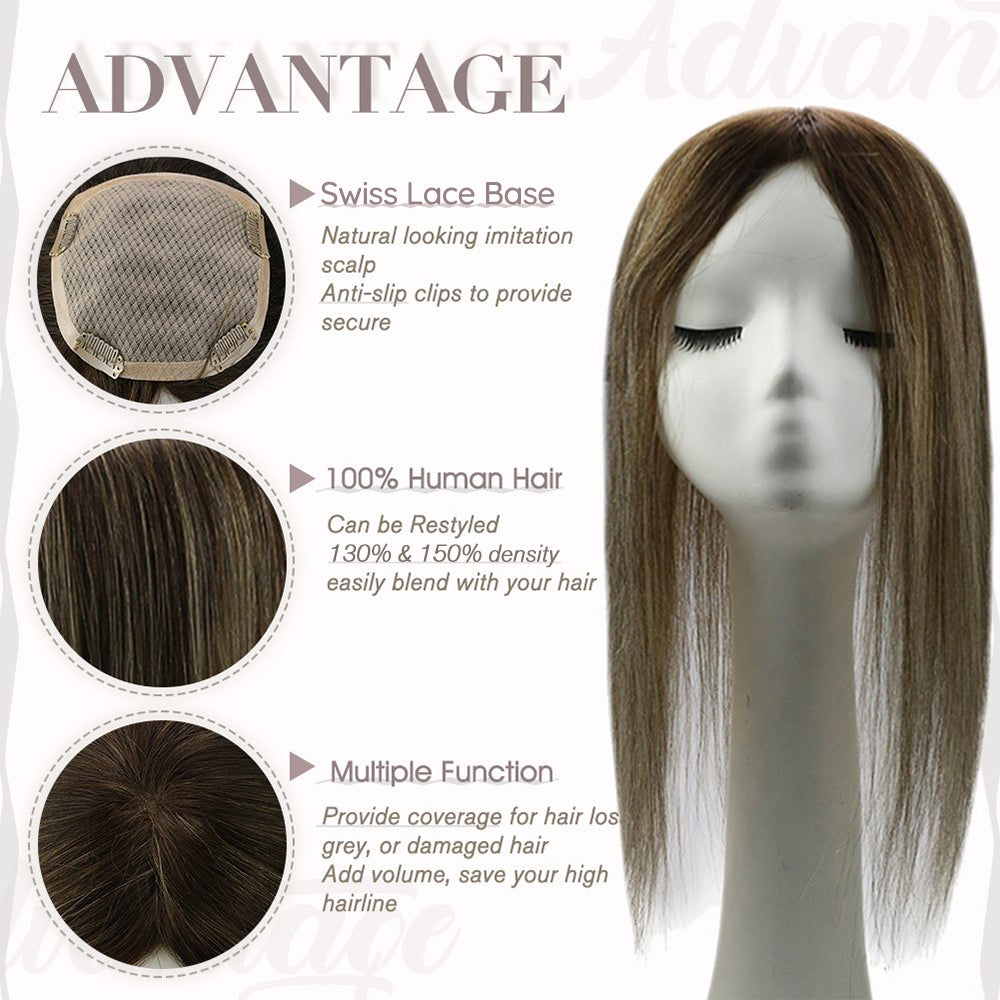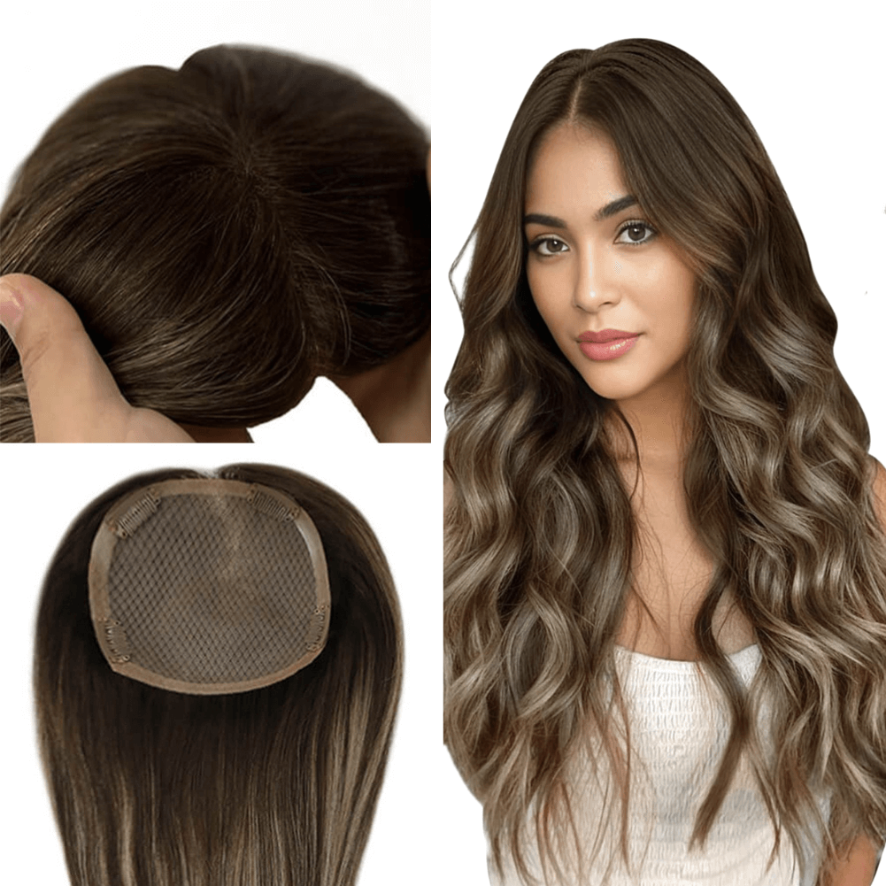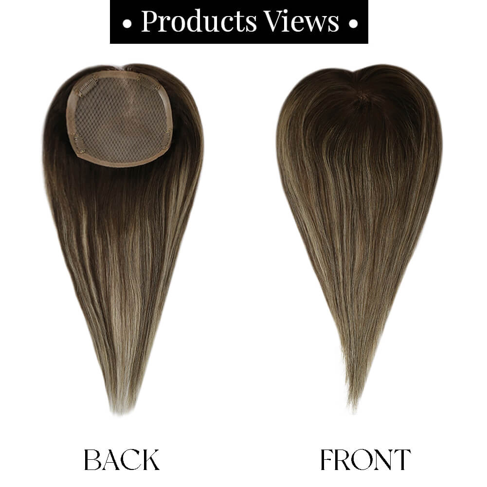 13x13cm Human Hair Toppers Mono Base Balayage Brown #4/27/4
