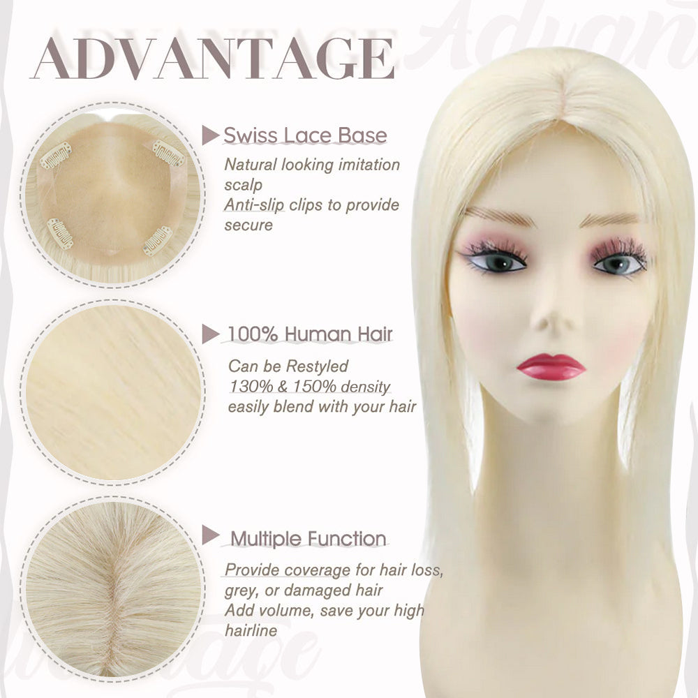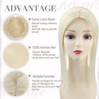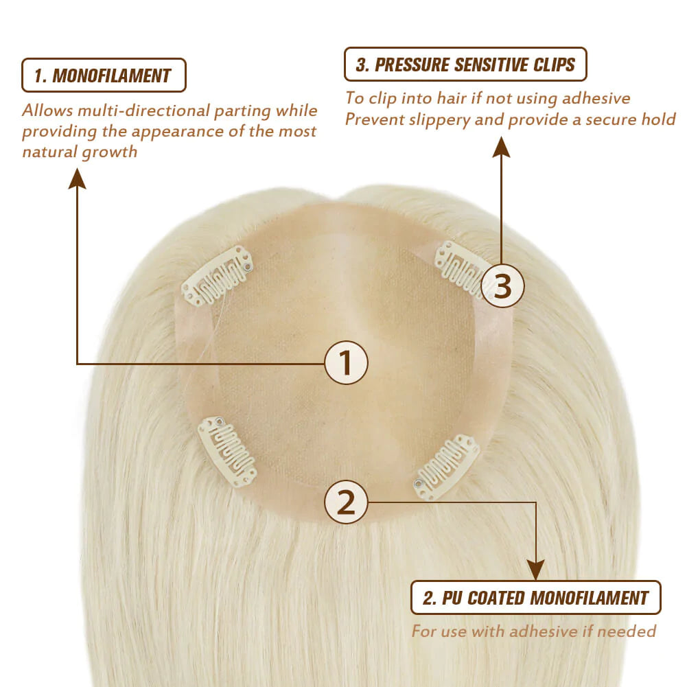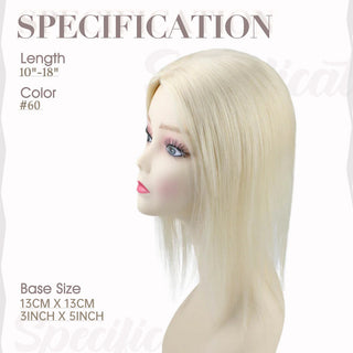 13x13cm Human Hair Toppers Mono Base Platinum Blonde #60