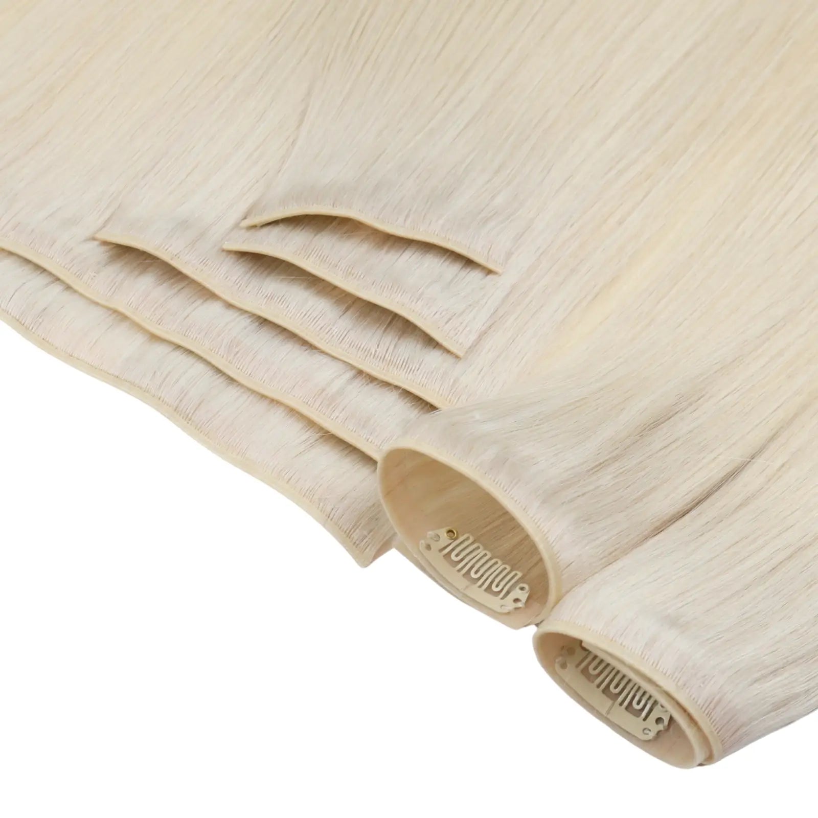 Genius PU clip ins represent the latest innovation in hair extension technology, combining the best of both worlds for ultimate invisibility. Unlike traditional PU seamless clip ins, Genius PU extensions feature a revolutionary dual-sided design: a thin polyurethane (PU) strip on the clip side and a genius weft construction on the hair side. This advanced engineering significantly reduces PU strip visibility while creating an even more natural, undetectable blend with your hair.