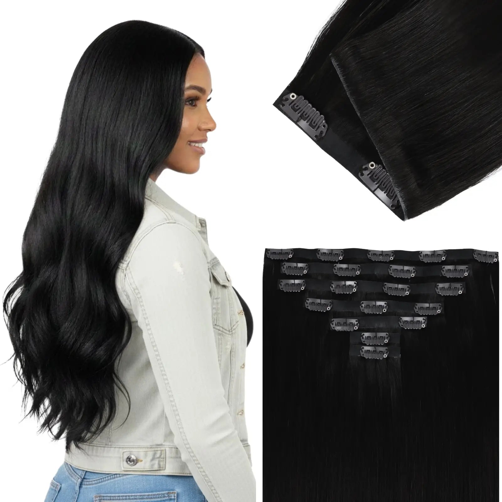 [Pre Order] Injection PU Clip in Hair Extensions Remy Hair Off Black #1B
