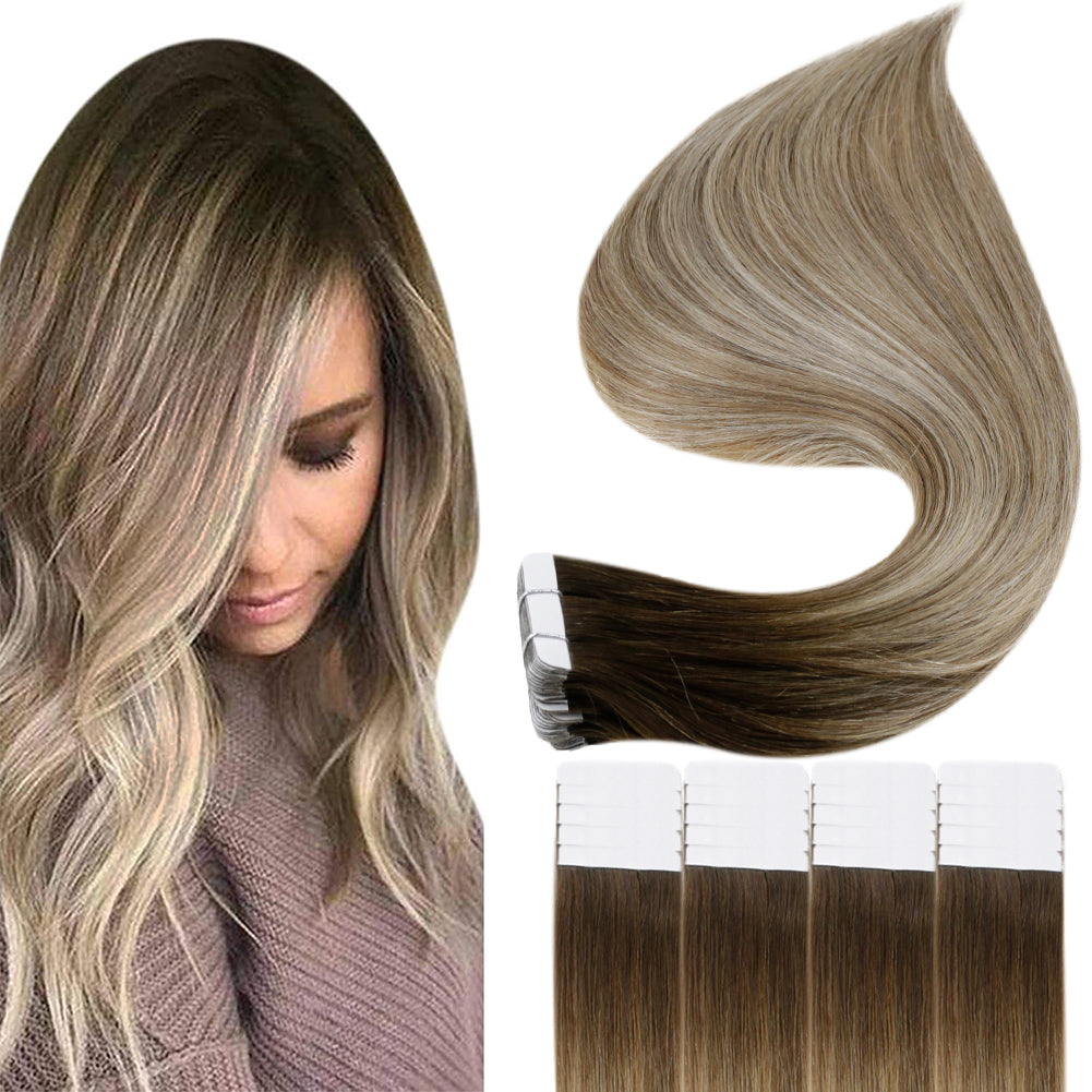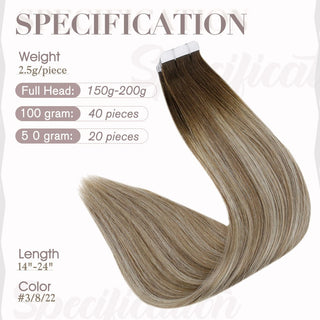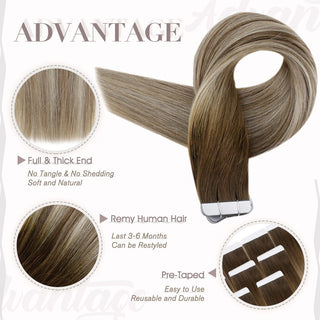 Tape in Hair Extensions 100% remy Human Hair Balayage (#3/8/22)