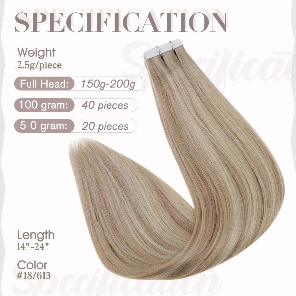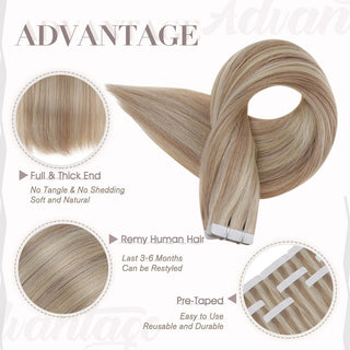 Tape in Hair Extensions 100% remy Human Hair Highlights (#P18/613)