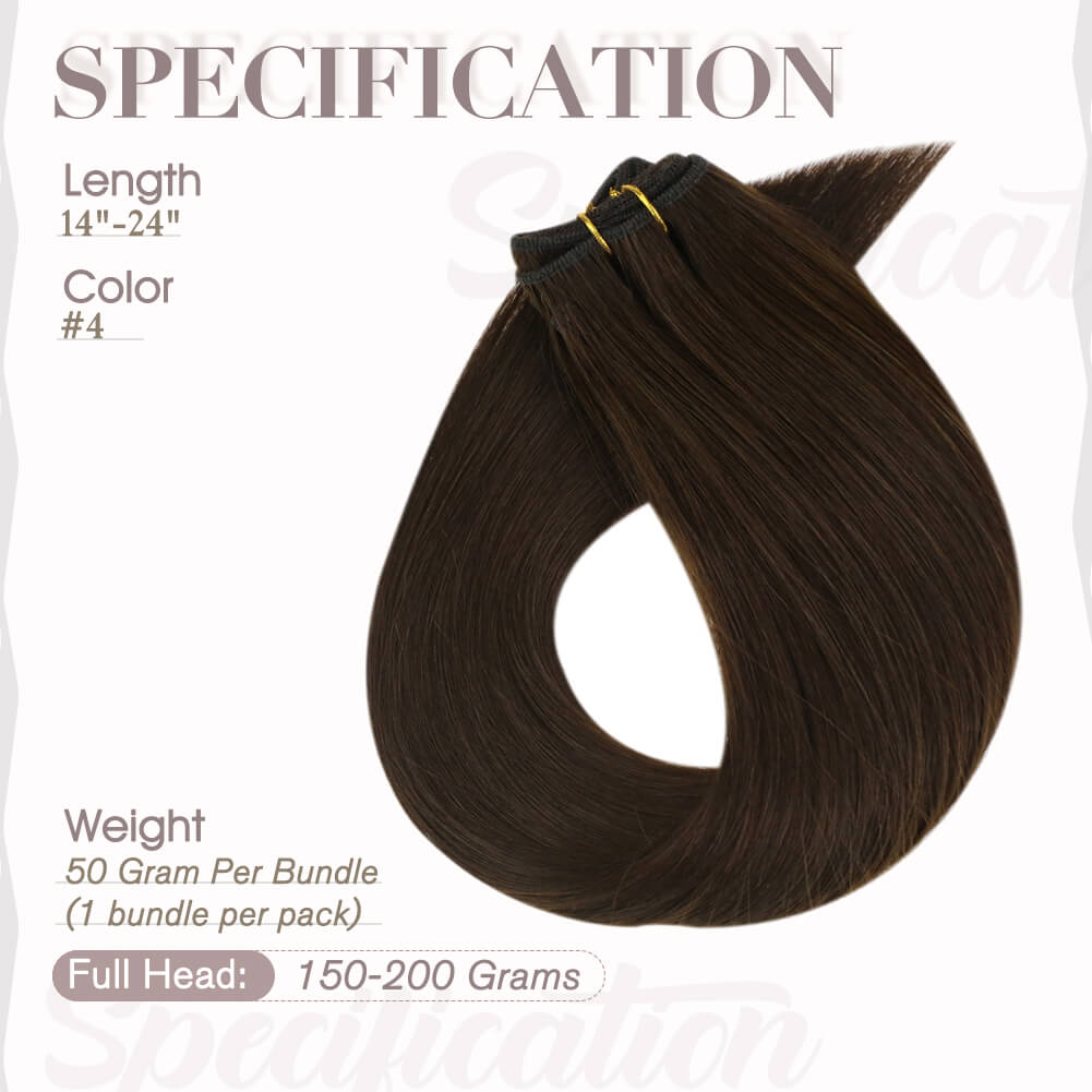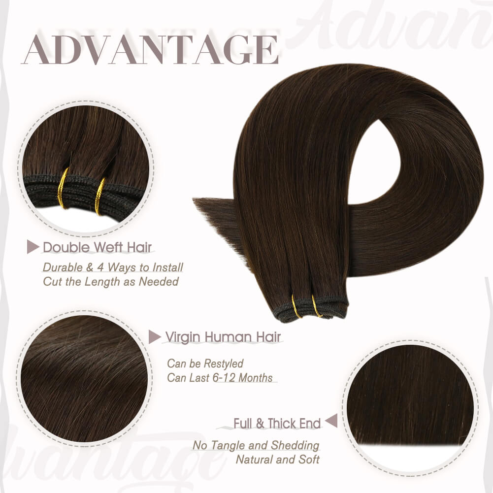 Top Virgin Sew In Weft Brazilian 100% Real Human Hair Extensions Bundles Dark Brown (#4)