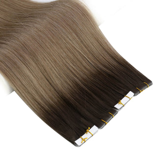 [Sale] Full Shine Virgin Tape in Human Hair Extensions Balayage Brown with Blonde (#4/7/80)