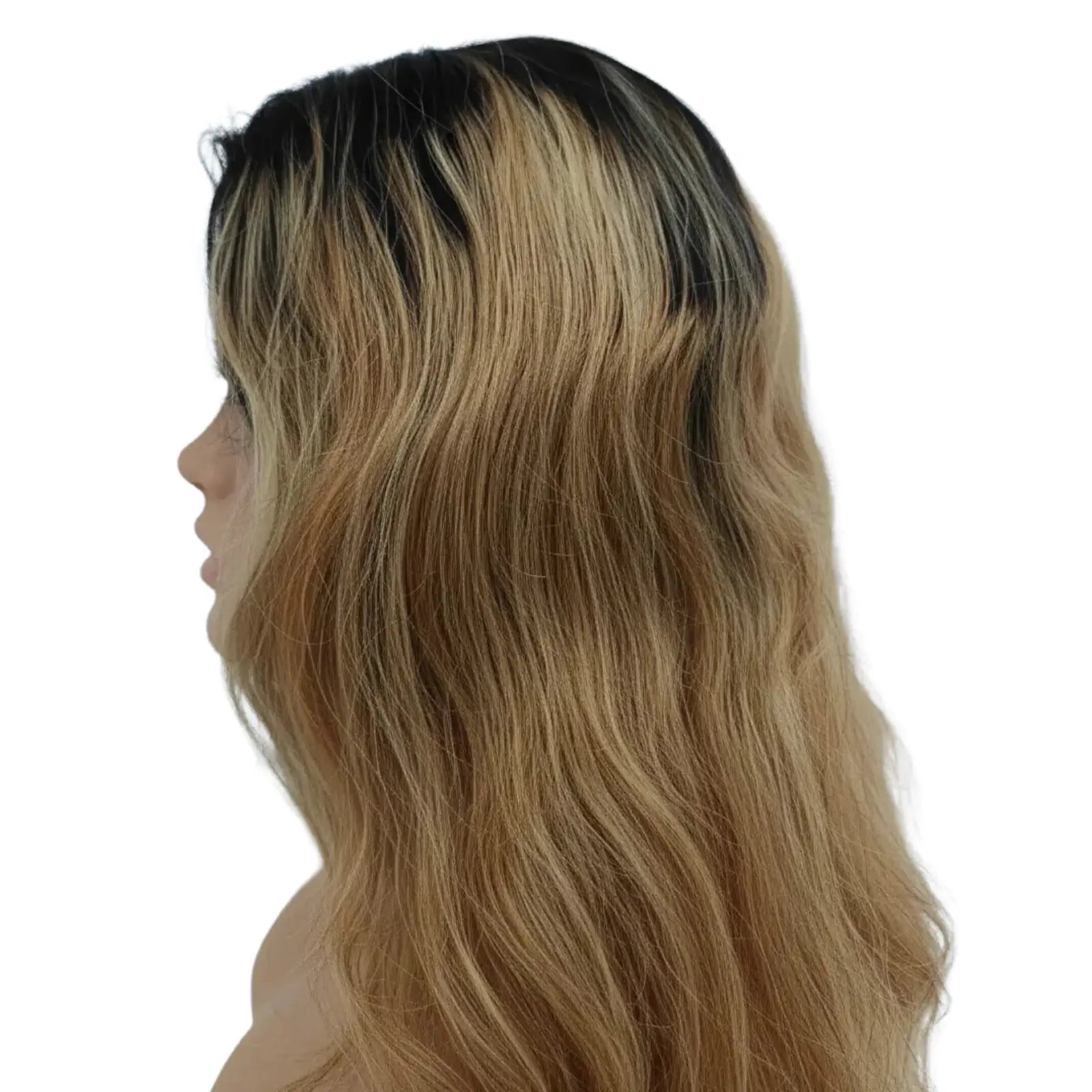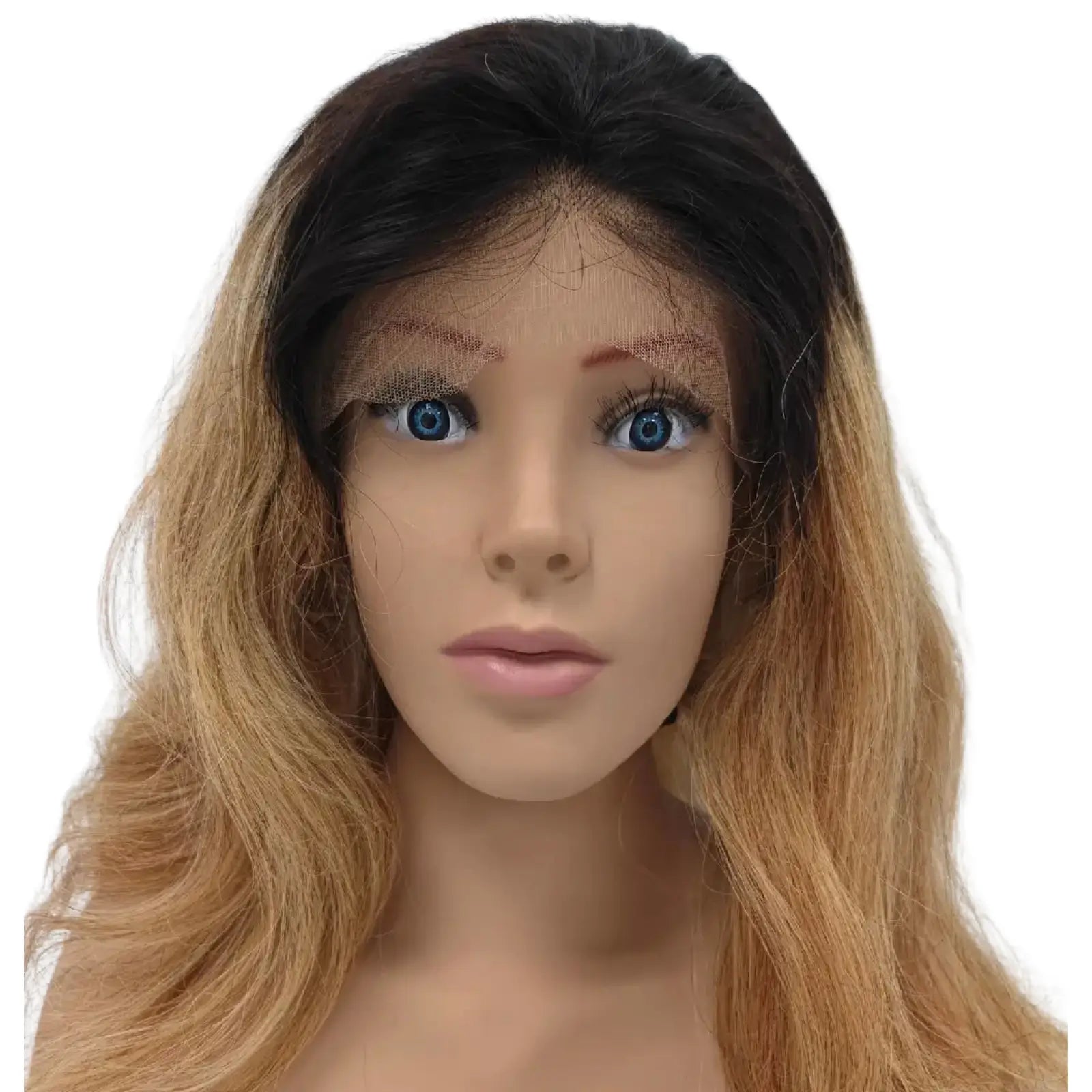 [Clearance] 16 Inch Black Root Dark Blonde Natural Wave Lace Front Wig #T1B/27/30