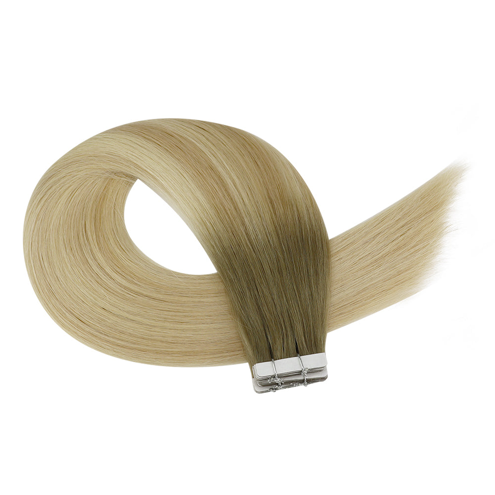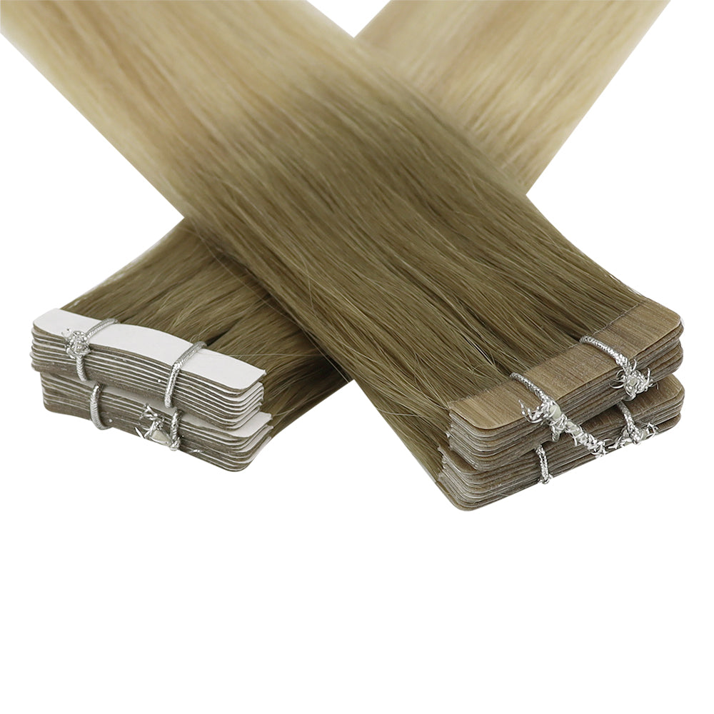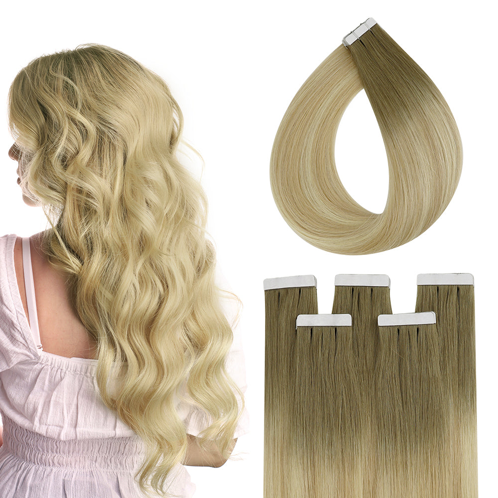 Tape In Virgin Hair Extensions 100% Human Hair Rooted Light Brown #8/27/60