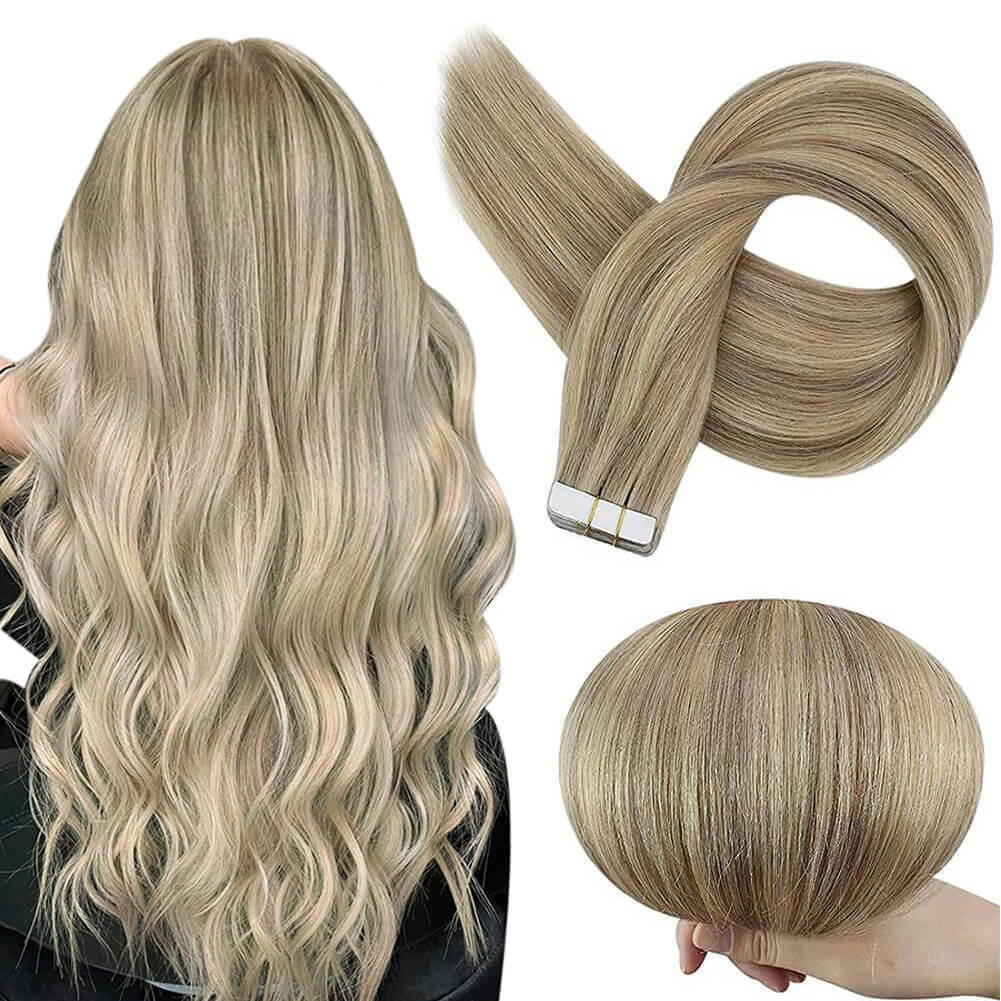 Tape in Hair Extensions 100% remy Human Hair Blonde Highlights (#P16/22)