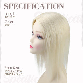 3x5 Inches Human Hair Toppers Mono Base Platinum Blonde #60