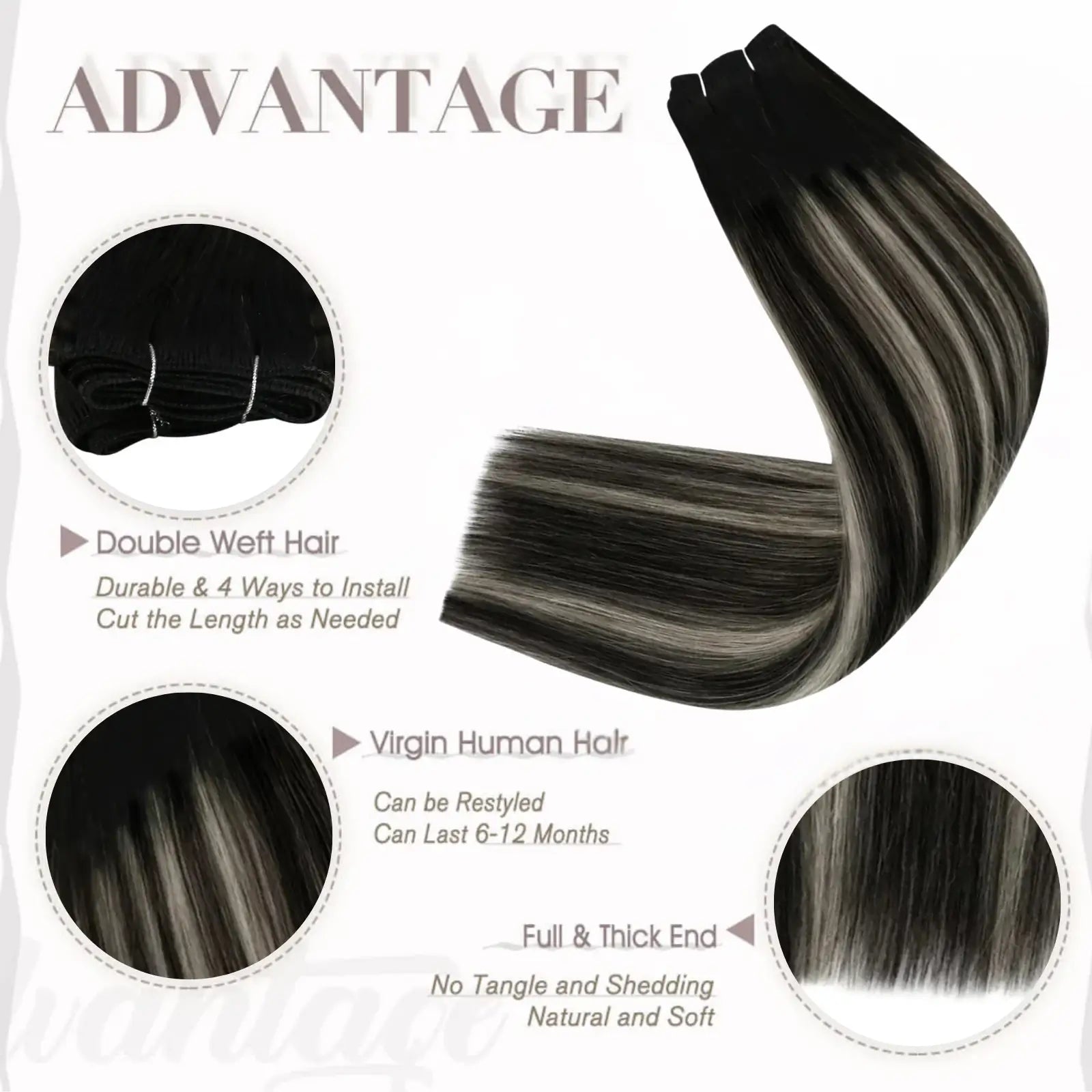 Virgin Weft Brazilian 100% Real Human Hair Sew In Bundles Balayage Highlights (#1B/S/1B)