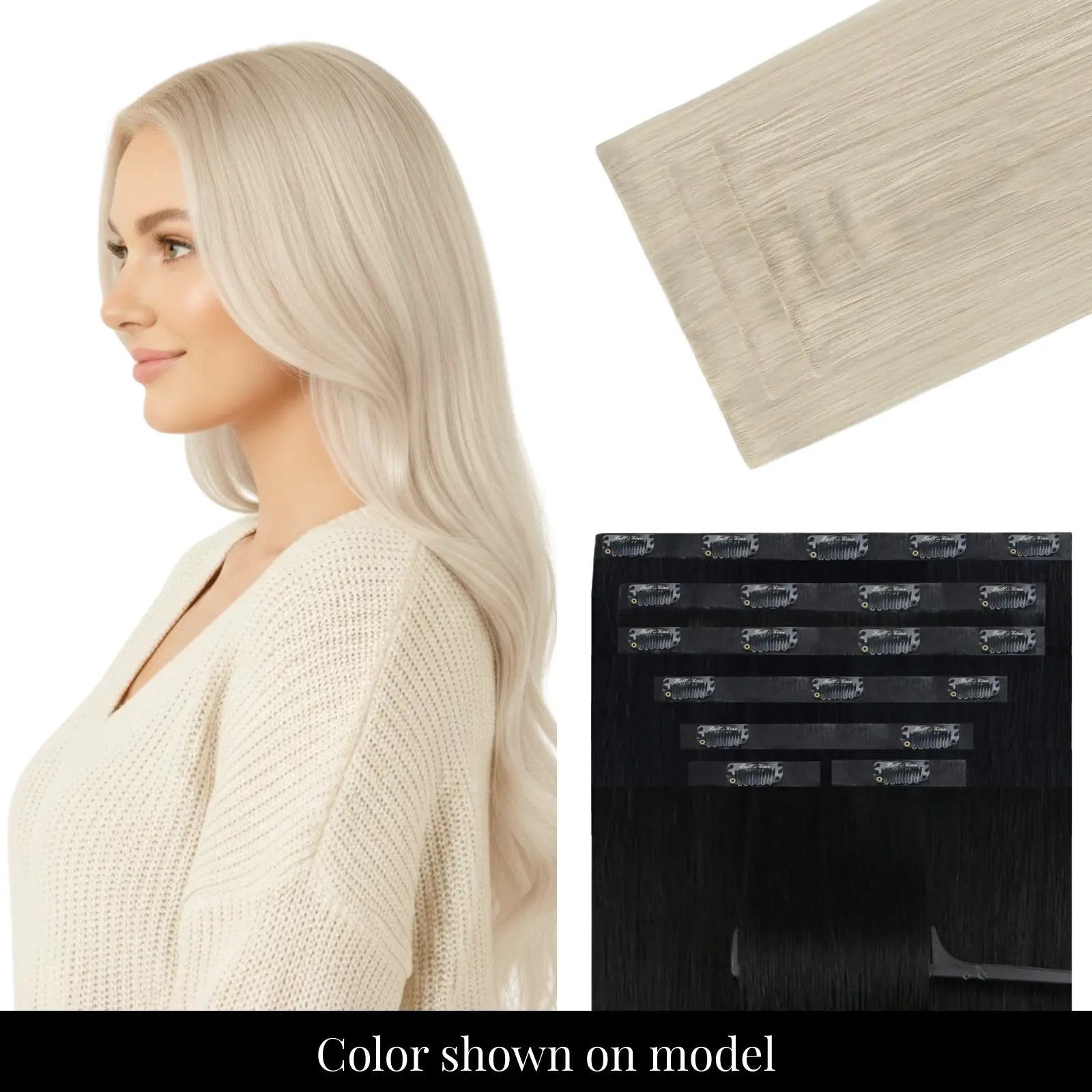 - Color: #60 Bleach Blonde (PU strip color-matched to hair)