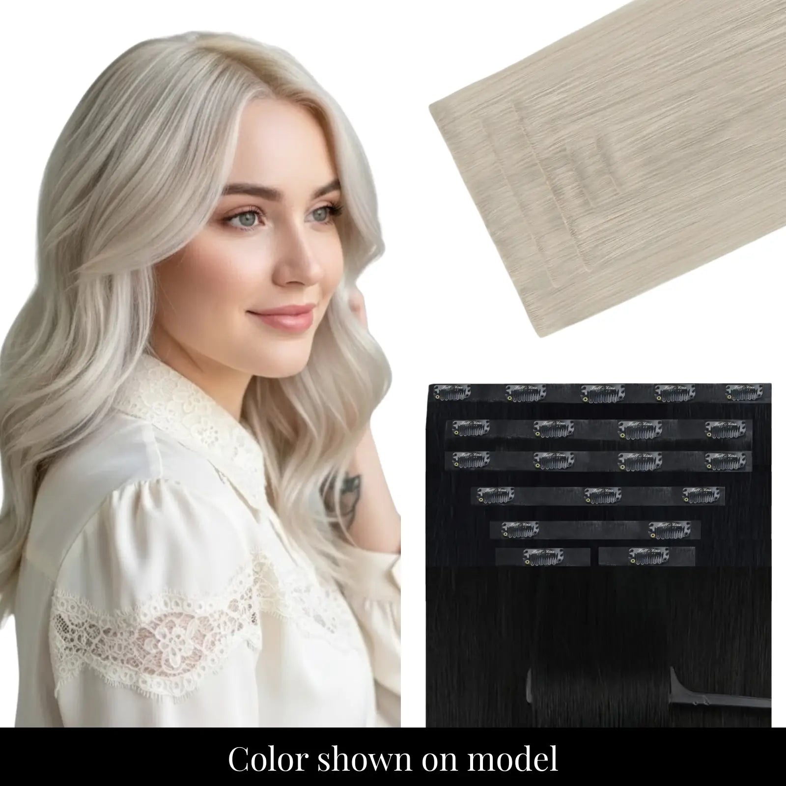 [Pre Order] Injection PU Clip in Hair Extensions Remy Hair Platinum Blonde #1000
