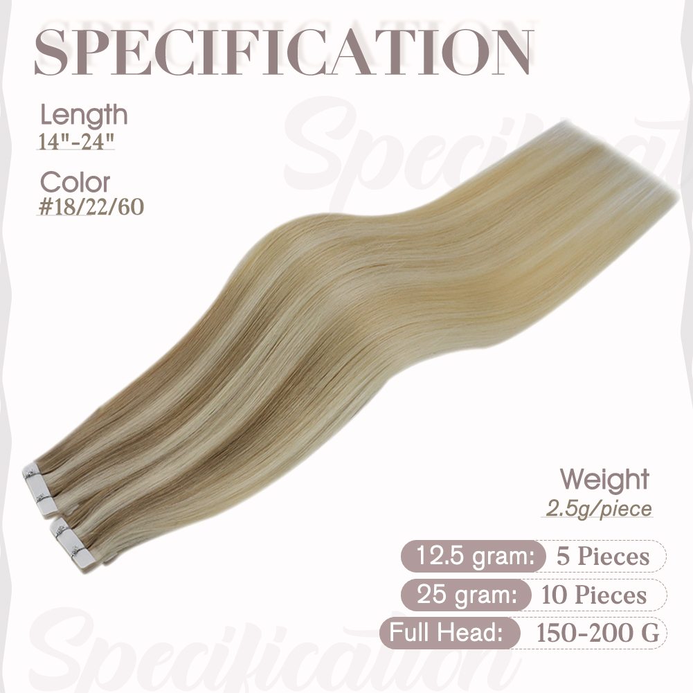 Virgin Injection Tape in Hair Extensions Blonde Balayage #18/22/60
