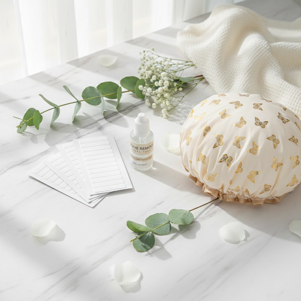 Tape-In Hair Extension Accessory Kit - Replacement Tapes, Remover, Shower Cap