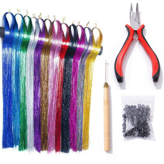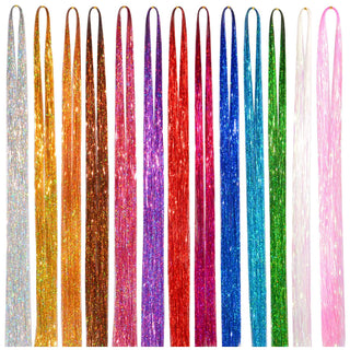 Elevate your hairstyle with our fairy hair tinsel, offering 12 vibrant colors and approximately 2400 strands of extensions. Mix and match colors to unleash endless beauty possibilities.