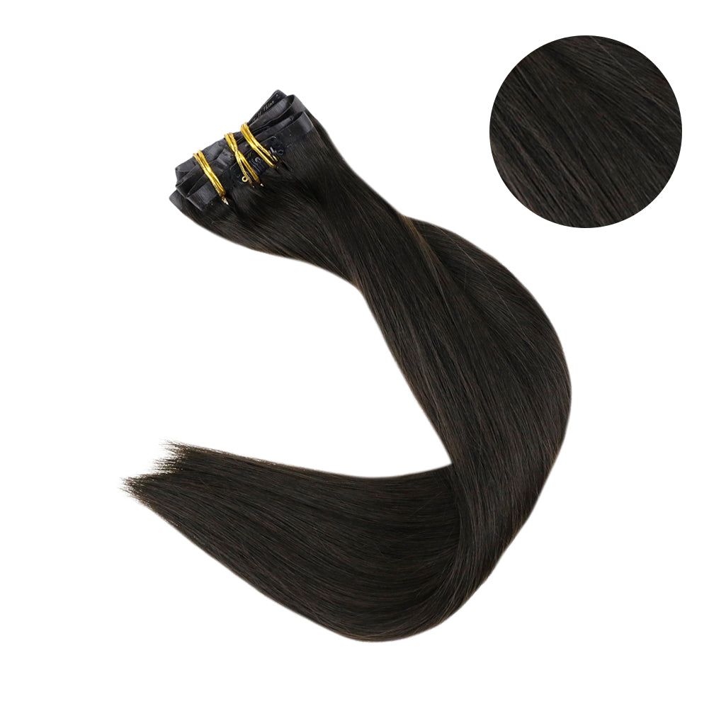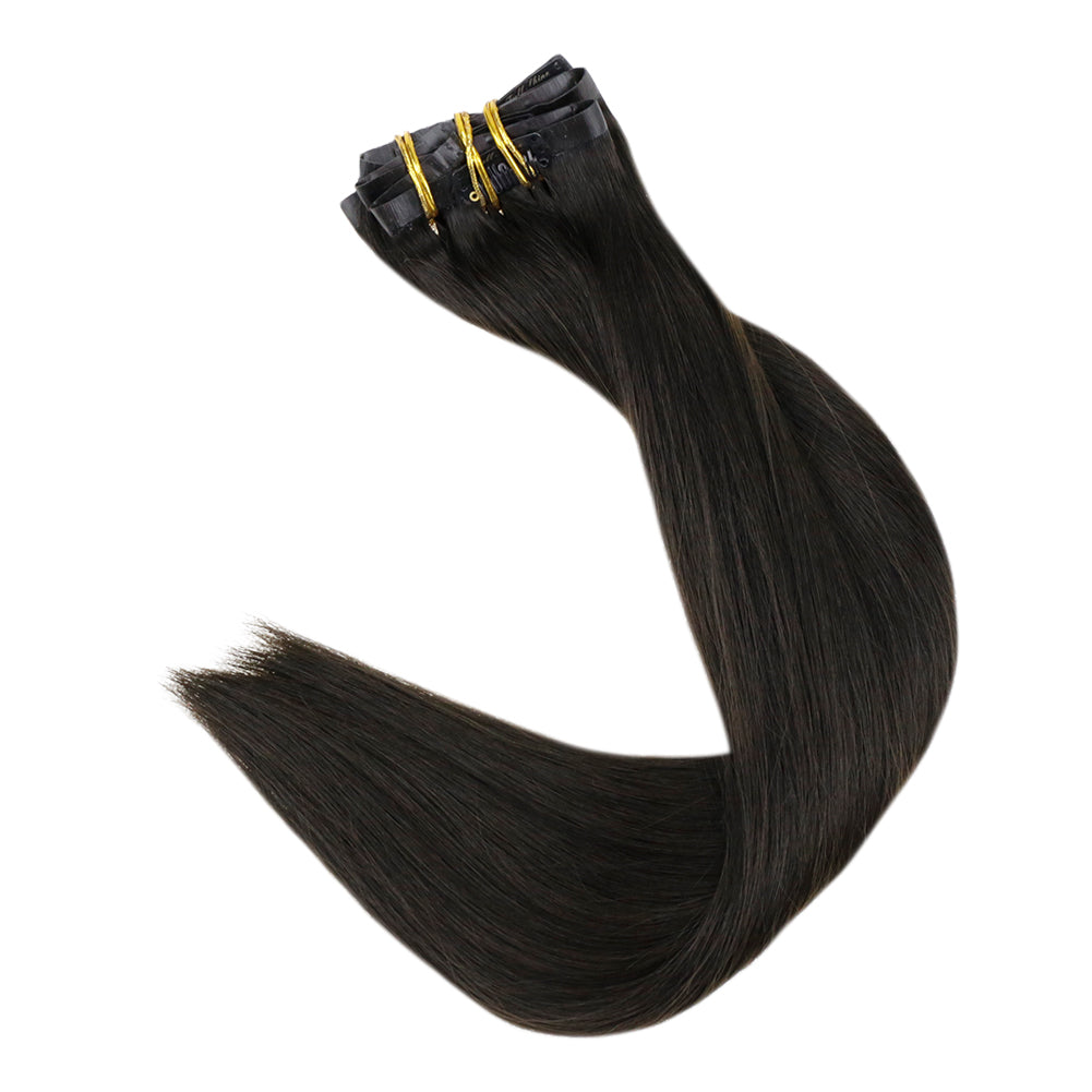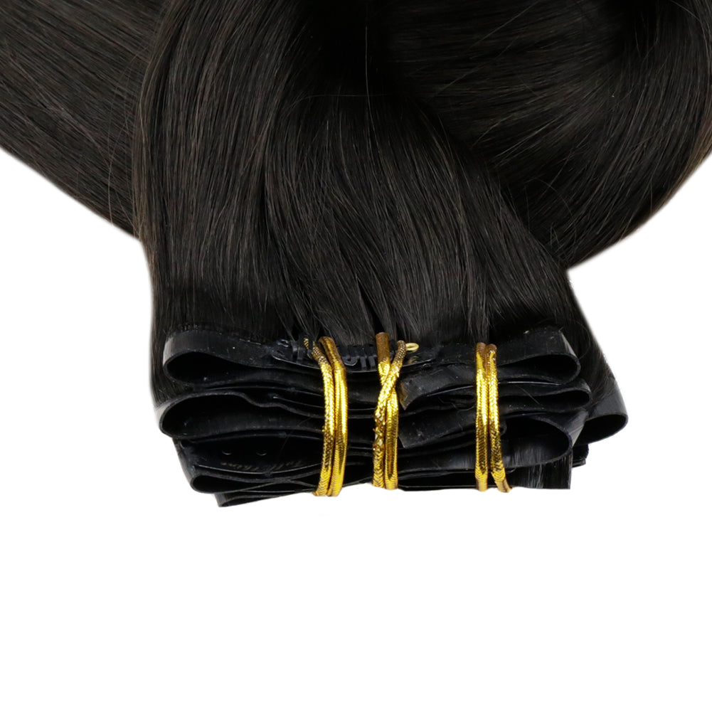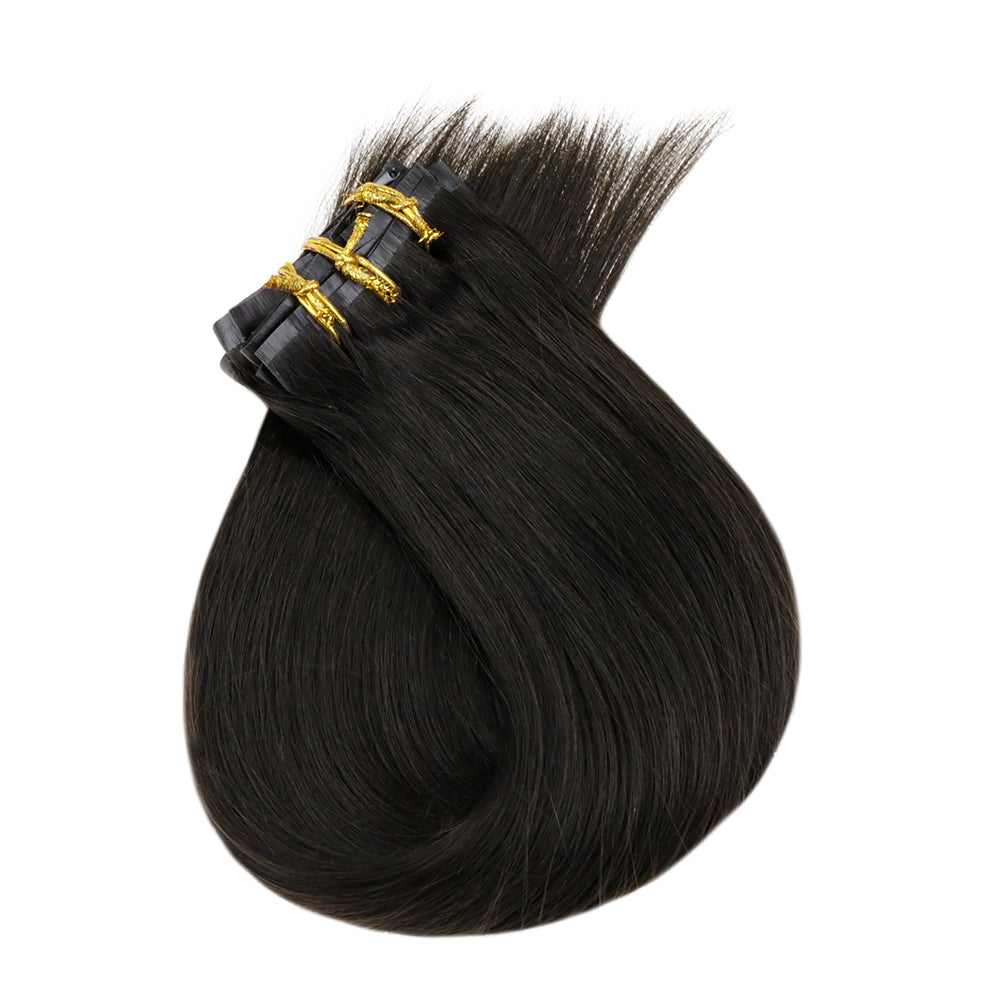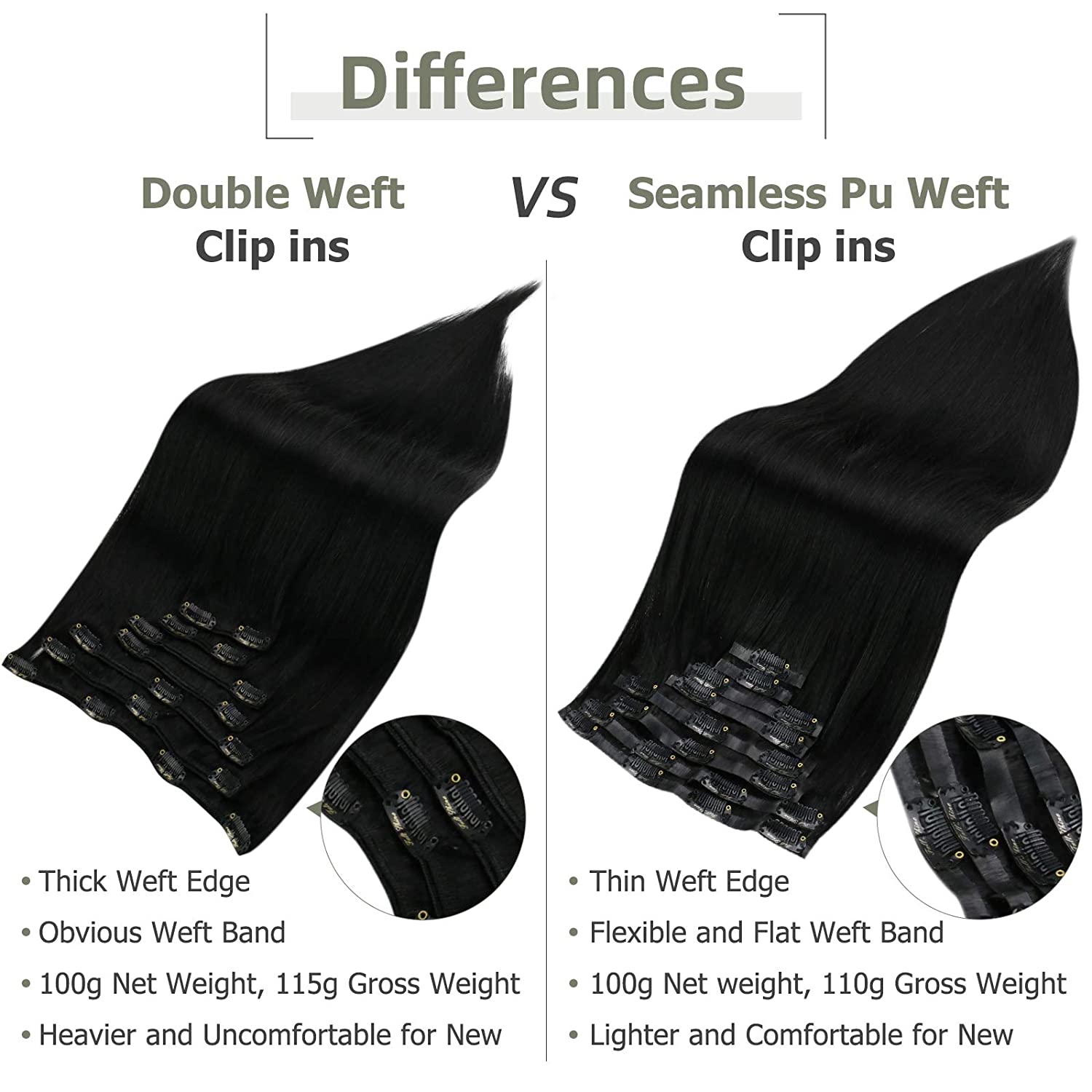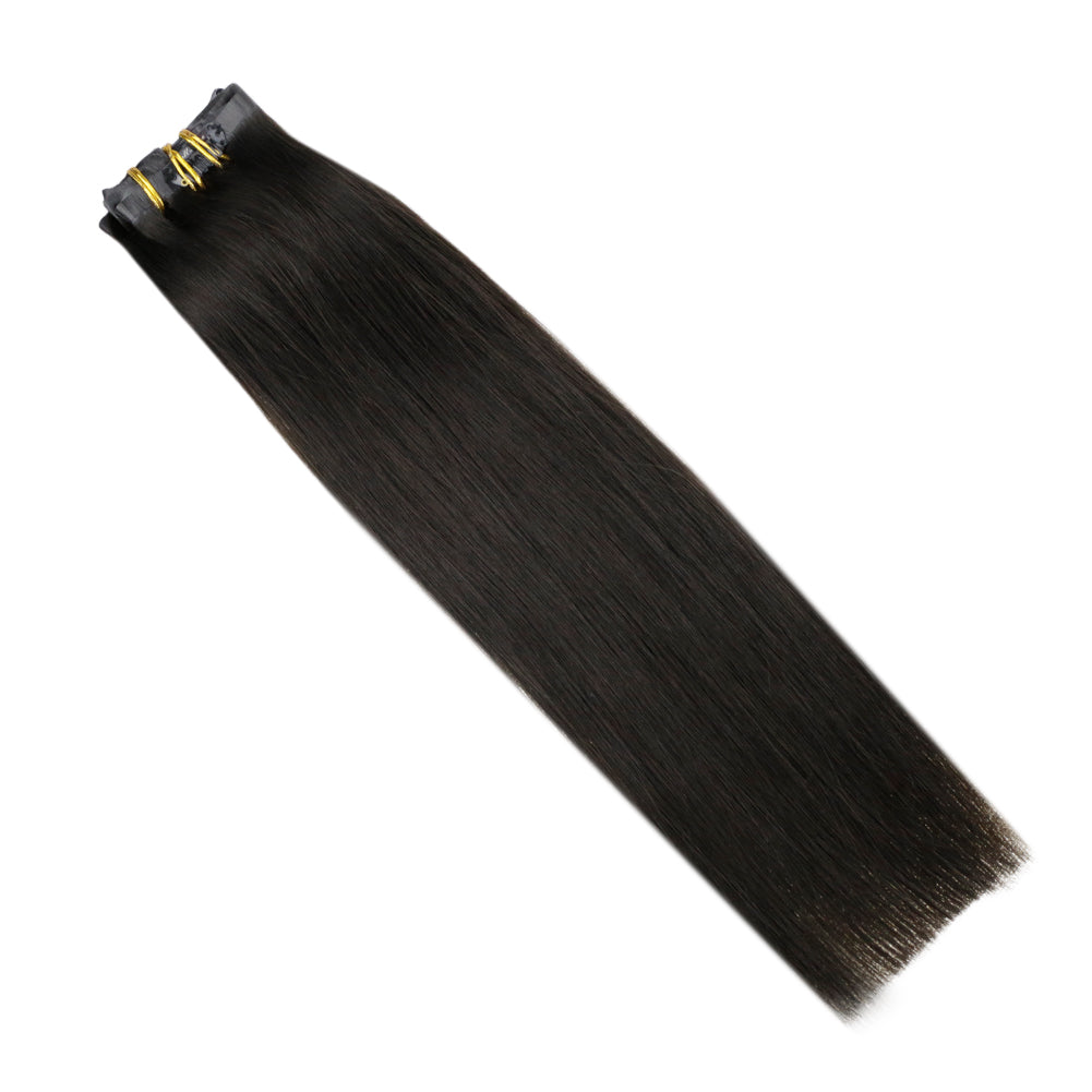 PU seamless clip ins are a type of hair extension that offers a seamless and discreet application. Unlike traditional clip ins, which have fabric or silicone wefts, PU seamless clip ins have a thin, flexible polyurethane (PU) strip at the top of the weft. The PU strip is incredibly thin and lies flat against the scalp, making it virtually undetectable when applied correctly. This unique design allows for a seamless blend with your natural hair, providing a more natural-looking and comfortable result.