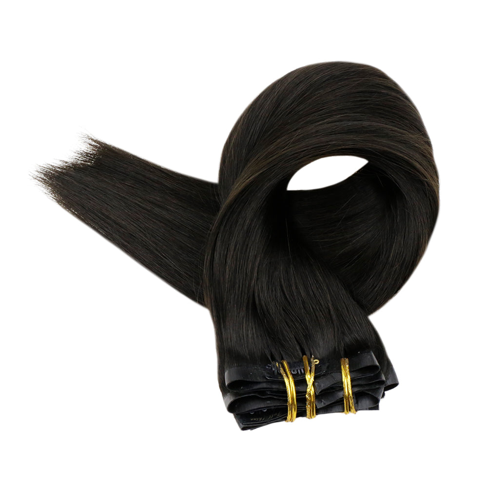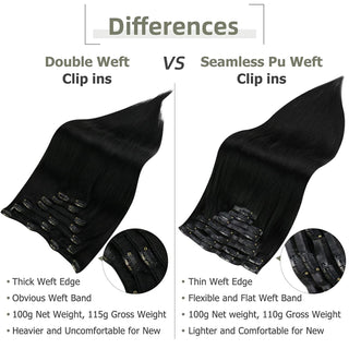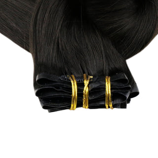 [Pre Order] PU Seamless Clip in Extensions 100% Remy Human Hair 8 Pieces Off Black (#1B)