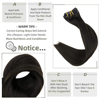 - Remy Human Hair: The extensions can be cut, curled, straightened, dyed or styled as desired, just like your natural hair. However, it is not suitable to bleach, and you can only dye dark colors from light colors.