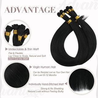 Virgin Hand Tied Weft Hair Extensions Jet Black #1