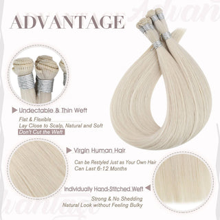Virgin Hand Tied Weft Hair Extensions Platinum Blonde #1000