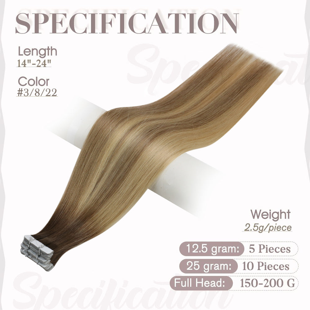 Virgin Injection Tape in Hair Extensions Balayage Blonde #3/8/22