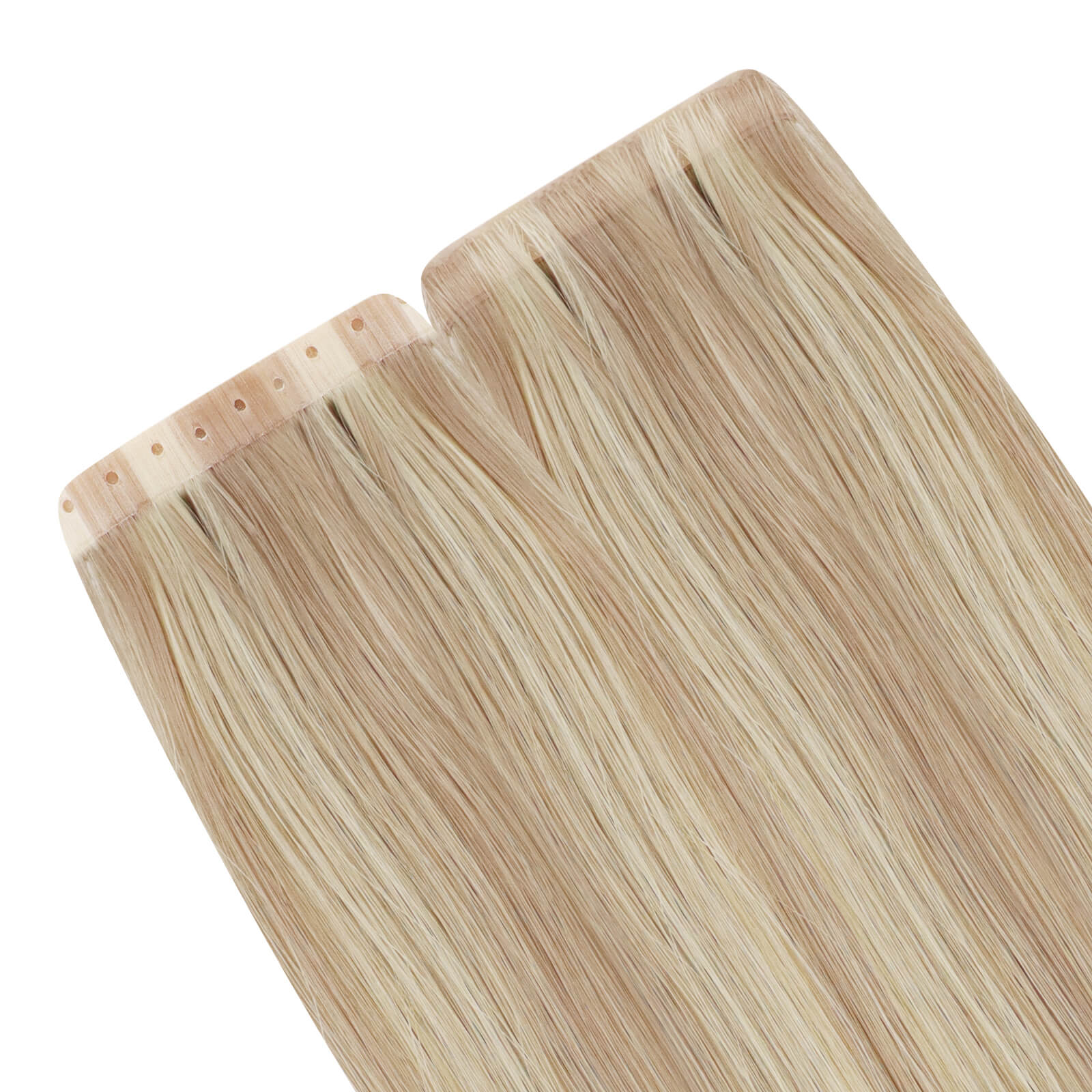 Virgin XO Invisible Weft with PU Hole Hair Extensions Pink Blonde Highlights #P18/613