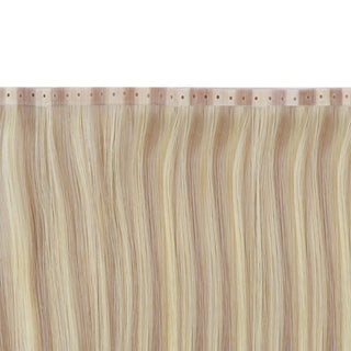 Virgin XO Invisible Weft with PU Hole Hair Extensions Pink Blonde Highlights #P18/613