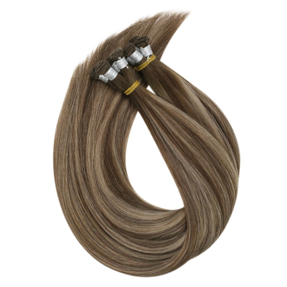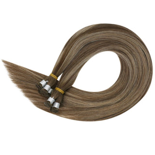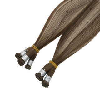 [US Only] Full Shine Hand Tied Weft Hair Extensions Virgin Human Hair Balayage Ombre Brown (#4/27/4)